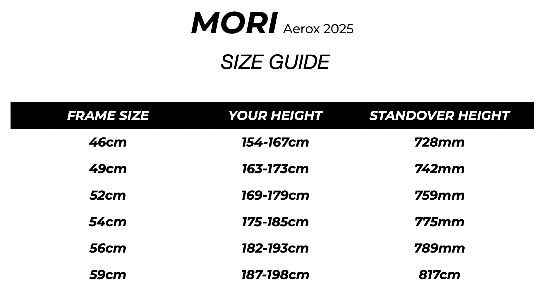 ELVES BIKES SIZING GUIDE